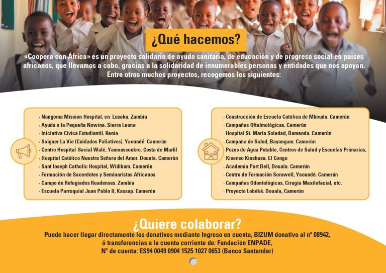 Sin la colaboración de nuestros donantes no sería posible el desarrollo de iniciativas sanitarias, de educación y de progreso social en África.